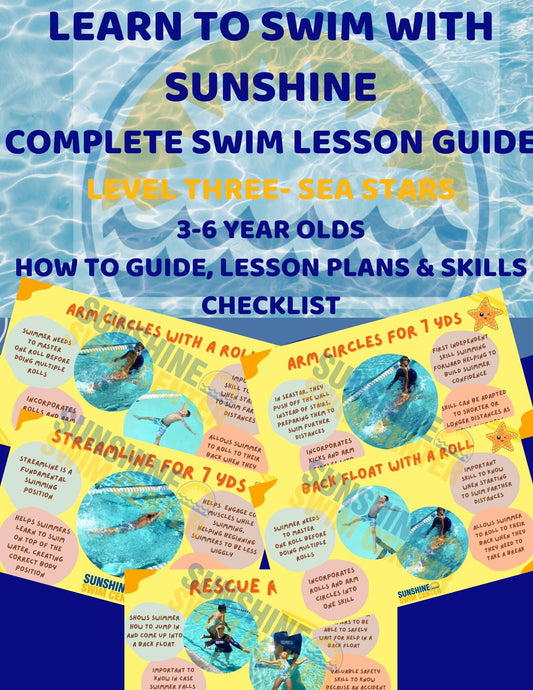 Step-by-step lesson plans for beginner swimmer, Easy-to-follow instructions for parents—no teaching experience required, Games and activities to keep kids engaged, Water safety tips and progress tracking sheets, Visual diagrams and instructor tips straight from the Sunshine Swim team